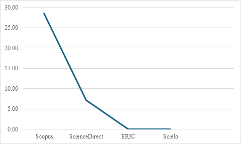 La figura 3 muestra una clara predominancia de documentos en la base de datos Scopus sobre investigación en robótica educativa, con un 35.71% de los artículos analizados, lo que evidencia su papel central como fuente académica en este campo. ERIC también registra una participación relevante (14.29%), especialmente en estudios con enfoque pedagógico, mientras que ScienceDirect y Scielo presentan una presencia más limitada (7.14% cada una), lo que sugiere una menor cobertura temática o visibilidad regional. Esta distribución pone de manifiesto una concentración de la producción científica en bases internacionales, dejando en evidencia la necesidad de fortalecer la publicación en plataformas regionales para fomentar una representación más equitativa y contextualizada de las investigaciones en Latinoamérica.