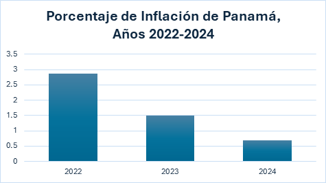 Porcentaje de Inflación en Panamá durante los años 2022 al 2024.