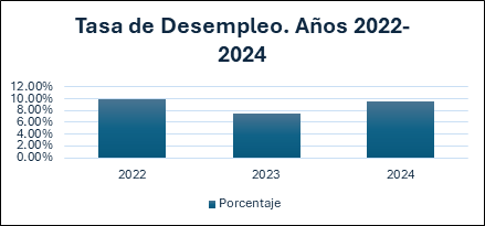 Para el último año, 2024, se mostró un aumento en la tasa de desocupación, esta aumentó 2.1 puntos porcentuales, respecto a agosto 2023, es decir, de 7.4% a 9.5%, situándose casi igual que para abril 2022, lo que muestra que los avances logrados de 2022 a 2023, fueron revertidos tal y como se observa en el Gráfico 2. Ello implica una reducción en el poder adquisitivo de los hogares panameños, con efectos sobre el nivel de consumo y, en consecuencia, sobre el crecimiento económico. (INEC, 2025).