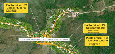 Nota: Se pudieron determinar los puntos críticos para la colocación de tuberías y tragantes pluviales.