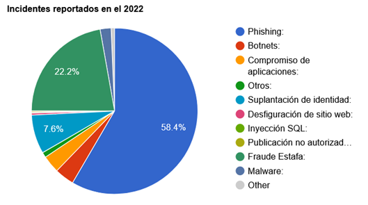 Los ataques recibidos por empresas y entidades públicas son cada vez más frecuentes. Según Fortinet en su informe “Global de Amenazas de FortiGuard Labs” semestral del 2022, el país tuvo un total de 1,400 millones de intentos de ciberataques en ese año, siendo la amenaza principal el ransomware (Fortinet, 2022). Los eventos registrados o reportados al CSIRT han sido en total 3,820 incidentes (CSIRT, s.f.). Ver Figura 1.