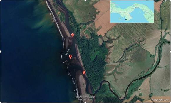 Los ríos Playita y Pavo se encuentran en el sur del distrito de Mariato en la provincia de Veraguas en la región central de Panamá. Las muestras se tomaron en la porción final de cada río y en la unión de ambos en su desembocadura (Figura 1).