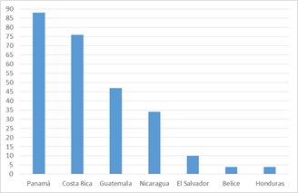 Grafico 1. Cantidad de especies de Dermaptera por país de Centroamérica.
