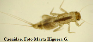 Seguido están los Ephemeroptera con mayor riqueza en los Caenis sp. y con menor organismos los Thraulodes sp. De los Caenidae, el género más común es Caenis; se debe a que puede habitar en un amplio rango de condiciones ambientales, desde aguas eutrofizadas, con altas temperaturas y bajos niveles de oxígeno (Springer et al., 2010), (Fig7). Los Leptophlebiidae son comunes en América Central y presentan mayor diversidad en ríos de aguas limpias. Entre estos tenemos a los Thraulodes, que son reptadoras, asociadas a las acumulaciones de hojarasca en los ríos (Serrano Cervantes y Zepeda Aguilar, 2010), (Fig. 2).