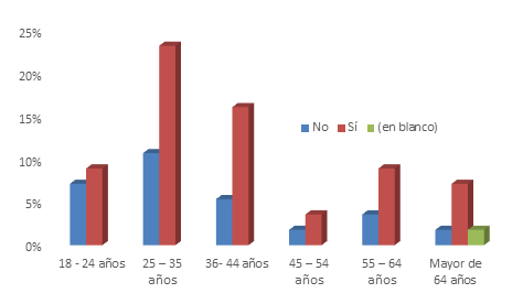 En la anterior información el rango de edades de 25 a 35 años respondió que sí conocen el término “Estadística en Salud”, seguido de las edades entre 36 a 44 años; es relevante mencionar que la mayoría de las personas entrevistadas indicaron que sí conocen o están familiarizados con esta ciencia.